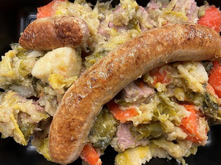 De aardappelen worden best apart gekookt en pas op het einde bij de hutsepot vermengd.